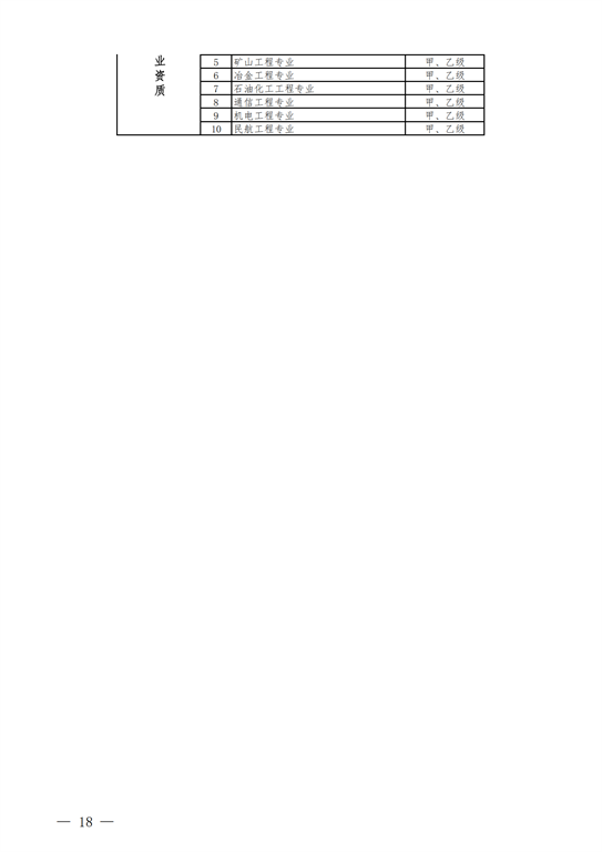 4.工程監(jiān)理資質(zhì)。保留綜合資質(zhì);取消專業(yè)資質(zhì)中的水利水電工程、公路工程、港口與航道工程、農(nóng)林工程資質(zhì),保留其余10類專業(yè)資質(zhì);取消事務(wù)所資質(zhì)。綜合資質(zhì)不分等級(jí),專業(yè)資質(zhì)等級(jí)壓減為甲、乙兩級(jí)。